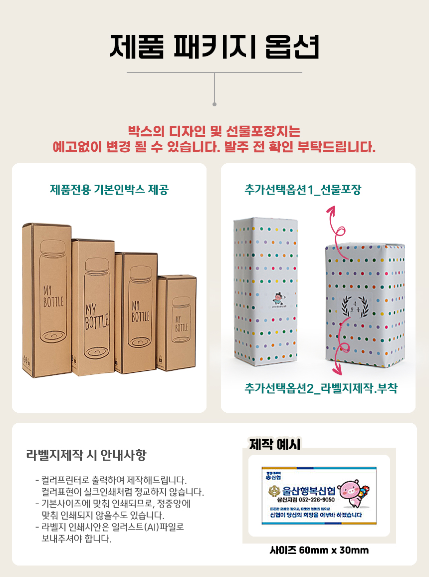 - ÆÐŰÁö, ¼±¹° »óÀÚ µî ¿É¼ÇÀ» Ãß°¡ÇÏ¿© ¹è¼Û ÈÄ ¹ÝǰµÈ »óǰÀÇ ¼±¹°»óÀÚ°¡ ÈѼյǾú°Å³ª µ¿ºÀÇÏÁö ¾ÊÀº °æ¿ì, ÇØ´ç ºñ¿ë °øÁ¦ ÈÄ È¯±ÞµÉ ¼ö ÀÖ½À´Ï´Ù.
